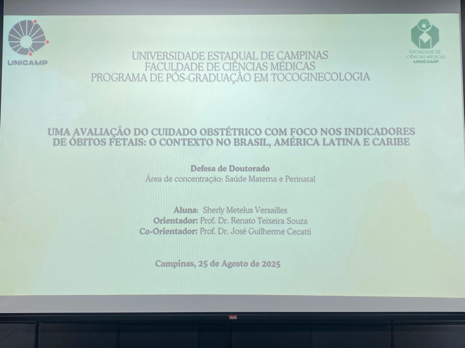Em 25/08/2025, a aluna Sherly Meteleous, Haiti / Santo Domingo, defendeu sua tese intitulada “UMA AVALIAÇÃO DO CUIDADO OBSTÉTRICO COM FOCO NOS INDICADORES DE ÓBITOS FETAIS: O CONTEXTO NO BRASIL, AMÉRICA LATINA E CARIBE”, sob a coordenação do Prof. Dr. Dr. Renato Teixeira Souza.